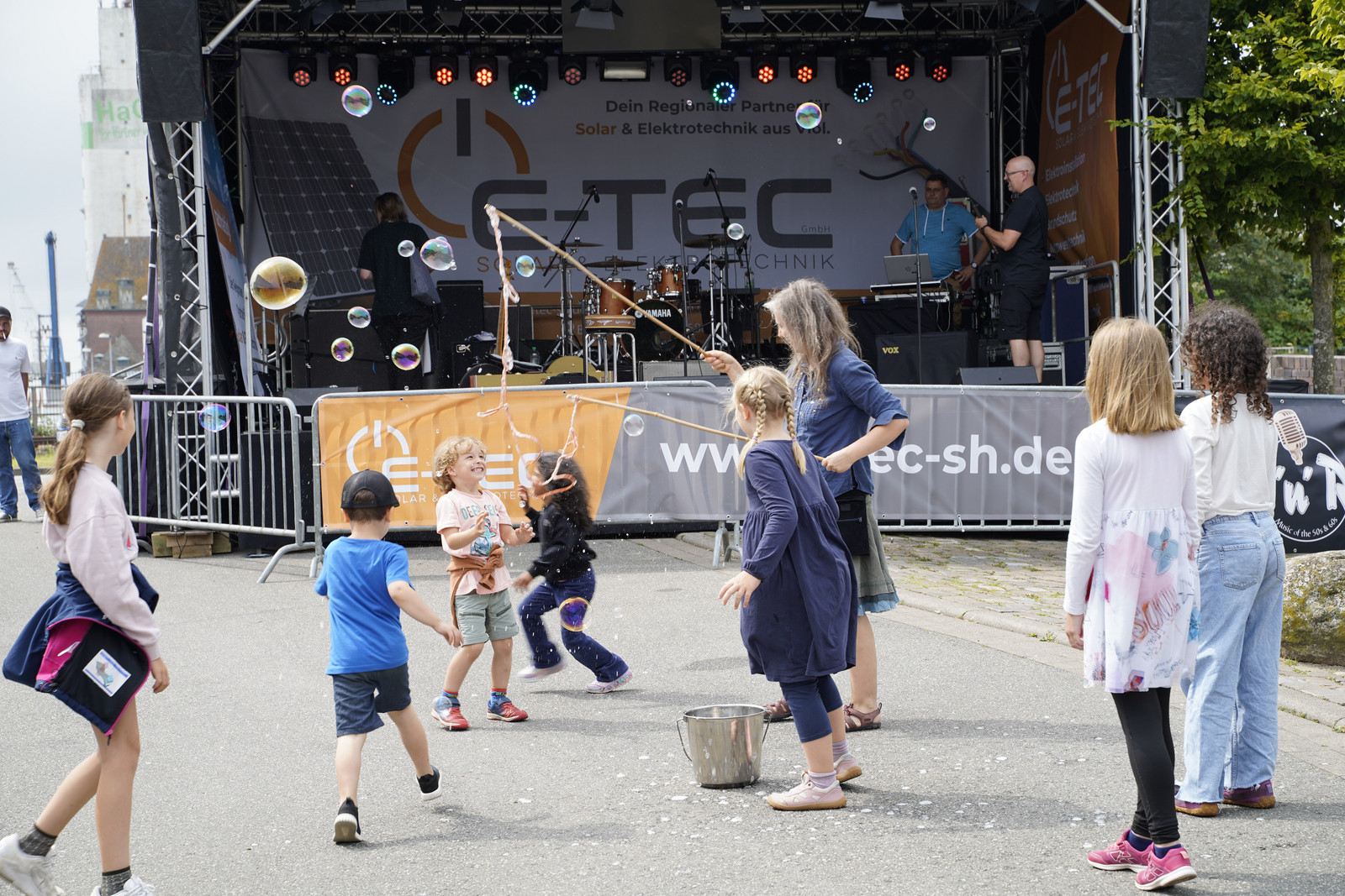 Dosenwerfen, Trampolinspringen oder Kinderkarussells sorgen mit einem abwechslungsreichen Tagesprogramm für ausreichend Action bei unseren kleinen Besuchenden. Im NOSPA-Kinderland auf dem Marktplatz warten weitere Spielangebote, sowie eine Hüpfburg, eine XL-Fußballdartscheibe und ein Puppentheater darauf, entdeckt zu werden. Mit viel Farbe und einer großen Portion Glitzer im Koffer zaubert die Kinderschminkerin strahlende Gesichter. Kreative und witzige Kleinkünstler:innen sorgen mit fantasievollen Kostümen und überraschenden Walking-Acts für Staunen und gute Laune. Ob Jonglage, Stelzenlauf oder Zauberei – mit ihren originellen Shows ziehen sie über die Kulturmeile und bringen Groß und Klein zum Lächeln. Auf der Südseite der Husumer Hafentage halten wir ein echtes Sommerhighlight bereit! In der Beachlounge können Sie direkt am Wasser auf einer mit Sand aufgeschütteten Strandfläche entspannen und ein eiskaltes Getränk genießen.