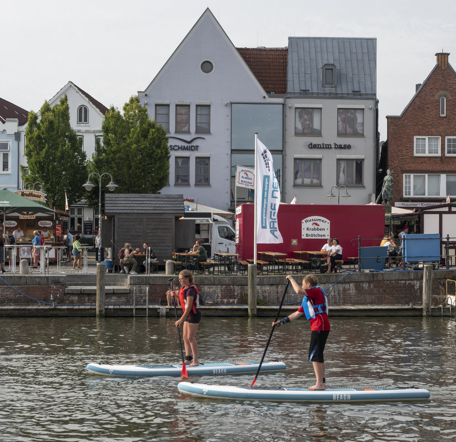 Schonmal Stand-Up-Paddling ausprobiert? Die Husumer Hafentage bieten mit ihrer Kulisse eine besondere Möglichkeit, den Binnenhafen aus einer anderen Perspektive kennenzulernen. Am Samstag starten hunderte Läufer den CJ Schmidt Hafentagelauf in verschiedenen Disziplinen. Der Leichtathletik- und Ausdauersportvereinigung Husum e. V. bietet Strecken von 10 km, 2,55 km, einen Firmencup und einen Kids-Lauf ab 4 Jahren an.